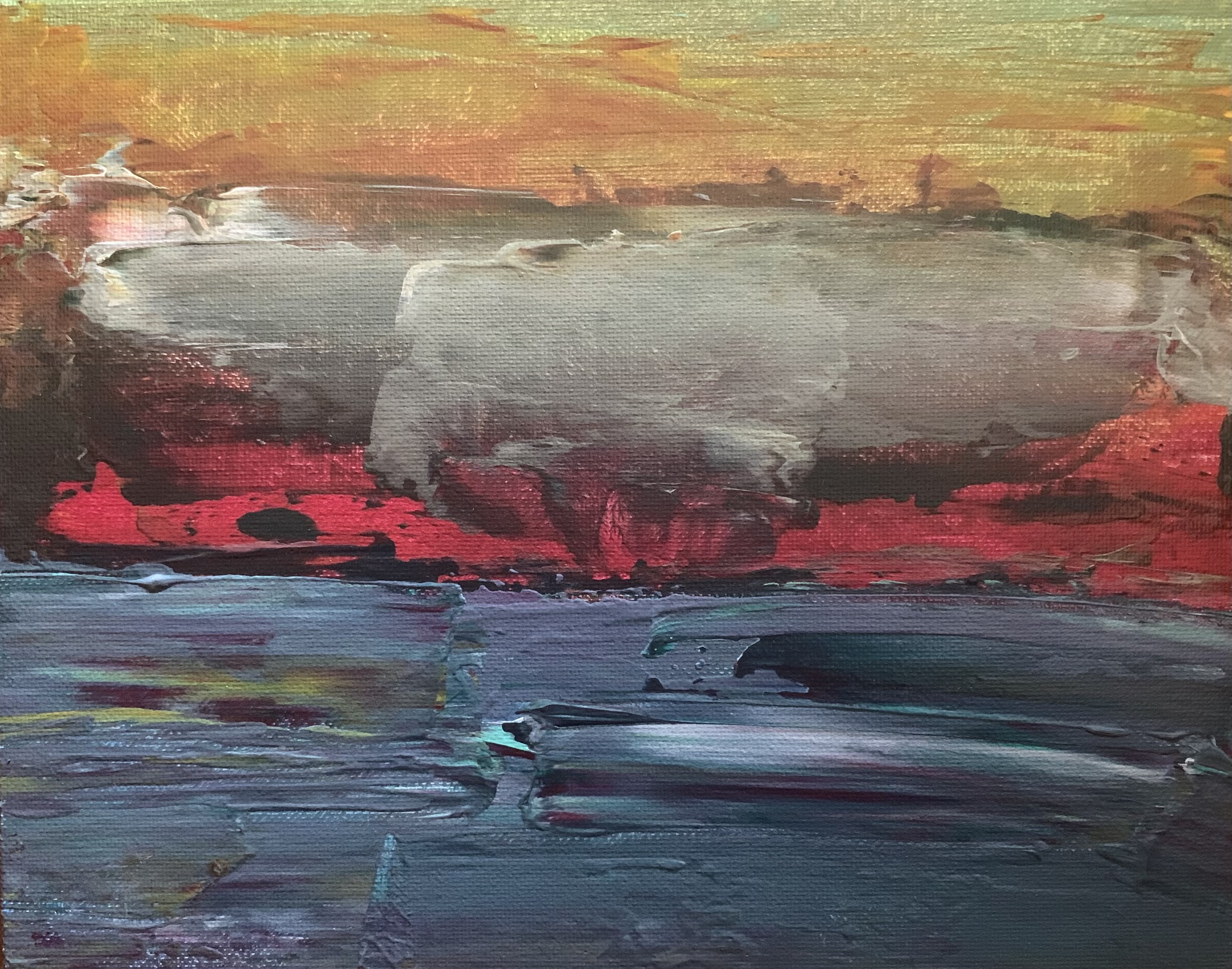 Her paintings explore themes of ritual, mythology, religion, dystopia, and storytelling. Often depicting layered, symbolic scenes, her pieces evoke the feeling of witnessing a fragmented dream or a sacred memory. Denycia’s creative process is intuitive and expressive—she paints with freedom, allowing meaning to surface after the work is complete.